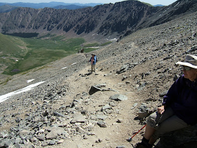 At this elevation, we can see over the ridge to the south and we get a view of Mt. Bierstadt with Mt.Evans to the left. We were there only a couple of days ago.....